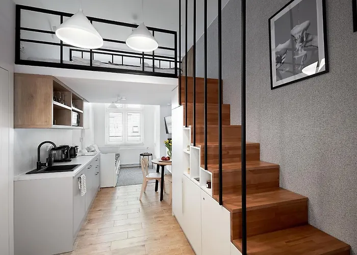 1-slaapkamer Dluga 18 Apartament Premium Z Antresola Appartement ligt op circa 18 minuten te voet van het Raadhuis en biedt Wi-Fi voor zaken of vrije tijd. Dit 25 m^2 grote appartement is ook uitgerust met voorzieningen zoals strijkfaciliteiten, een wasmachine om het comfort van de gasten te garanderen.